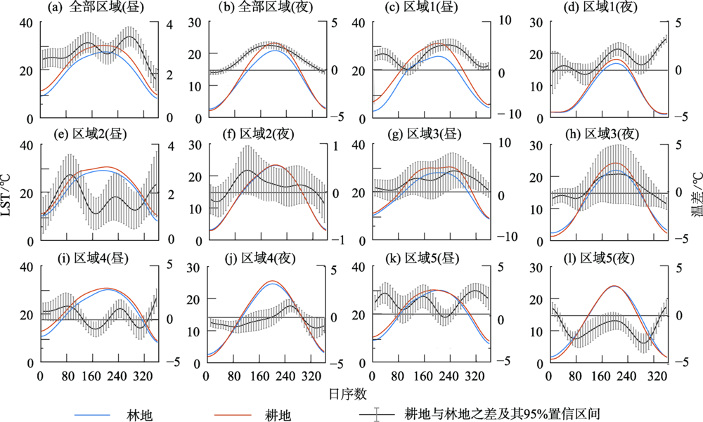 Effects of cropland and woodland conversion on land surface temperature based on Google Earth and MODIS land data: A case study of the middle and lower reaches of the Yangtze River Basin and its adjacent areas