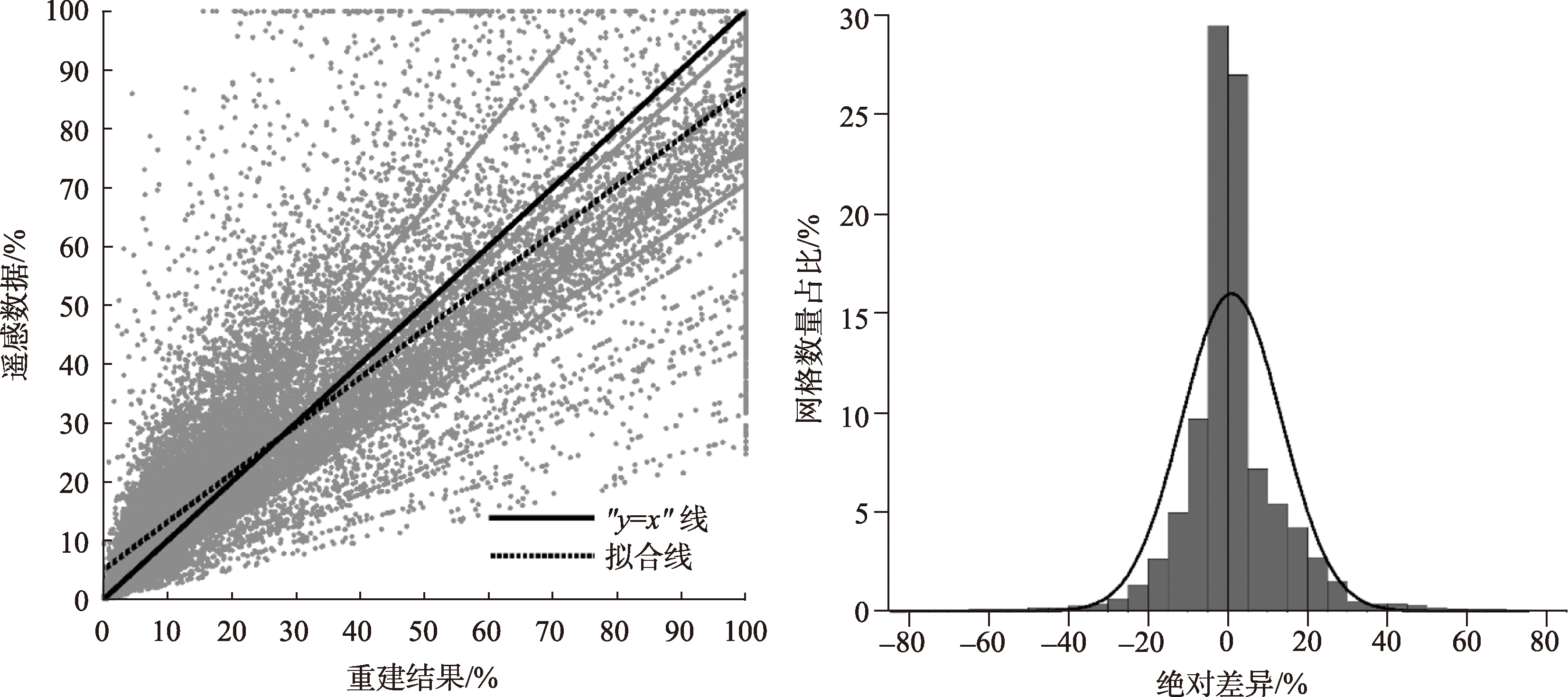 Tab.2 Statistics of absolute difference between the reconstruction of this study and satellite-observed data表2 网格化重建结果与遥感数据绝对差异分区统计 |