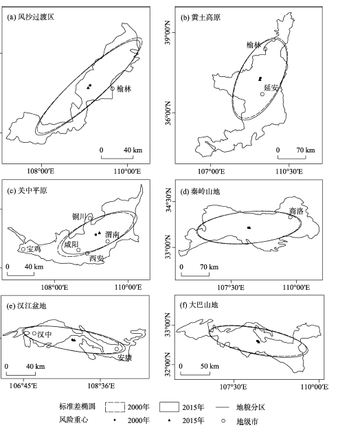 论文采用“概率—损失”二维风险模型解构陕西省区域生态风险,基于地貌分区视角识别多源风险类型的同时以景观格局与生态系统服务价值为关联要素合成潜在生态损失,在此基础上分析了陕西省2000—2015年单一风险要素及区域生态风险的时空分异,并基于地貌分区视角结合重心模型探讨了生态风险的时空迁移。结果如下:① 2000、2015年陕西省多源危险度分别为0.3837、0.4558,上升18.79%,大致呈现南北高、中间低的空间格局,沿南北轴线呈现“W型”展布;潜在生态损失分别为0.5537、0.6270,上升13.24%,除高原南部与秦岭东部山区外,生态损失均呈现高值;区域生态风险分别为0.2429、0.2865,上升17.95%,空间上呈现“三高夹两低”的分布格局。② 从时序变化来看,秦巴山地保持较低风险且风险变化率较小;黄土高原与风沙过渡区变化率处于中等,后者面临较高风险;汉江盆地风险最高,该区域与关中平原分别为风险变化率的首位与次位。从生态风险重心变化趋势看,黄土高原与风沙过渡区重心均向西南移动,关中平原与秦岭山地重心东移趋势明显,汉江盆地与大巴山地重心跃向东南。