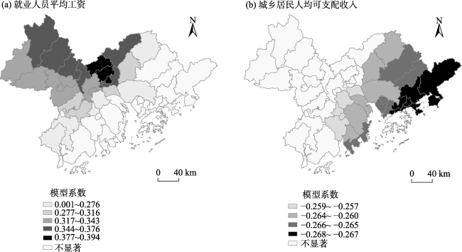 表5 经典GWR与MGWR模型指标Tab.5 Indicators for classical GWR and MGWR |