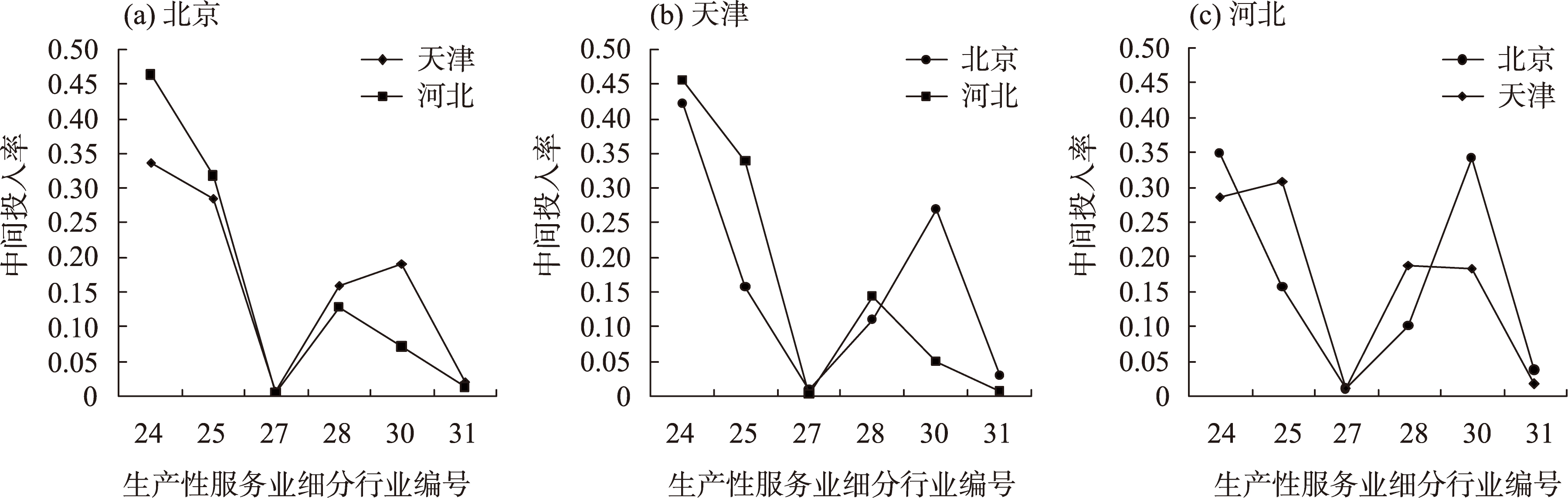 高素英, 崔琬纯, 张烨, 等. 京津冀生产性服务业与制造业互动关系研究[J]. 河北工业大学学报(社会科学版), 2021, 13(3): 1-9, 29.