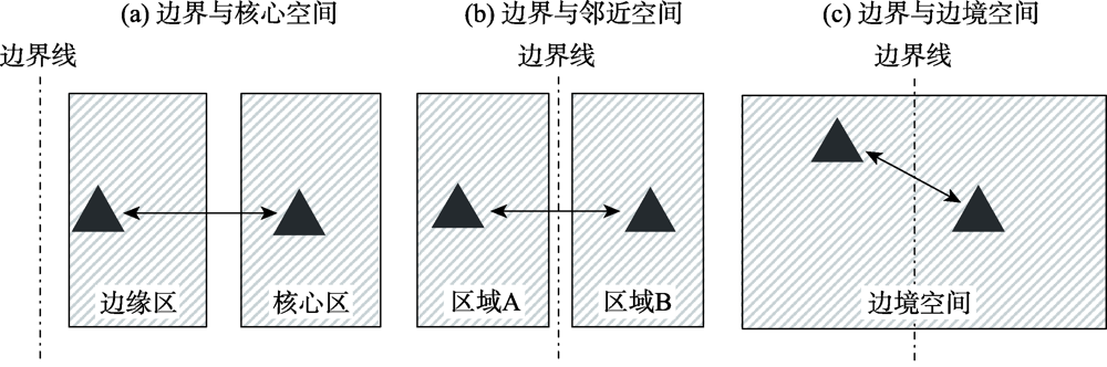 注:边界线表示现实中存在的复杂边界系统,包含三角的灰色矩形表示区域性质及范围,箭头的两侧表示互动的区域。