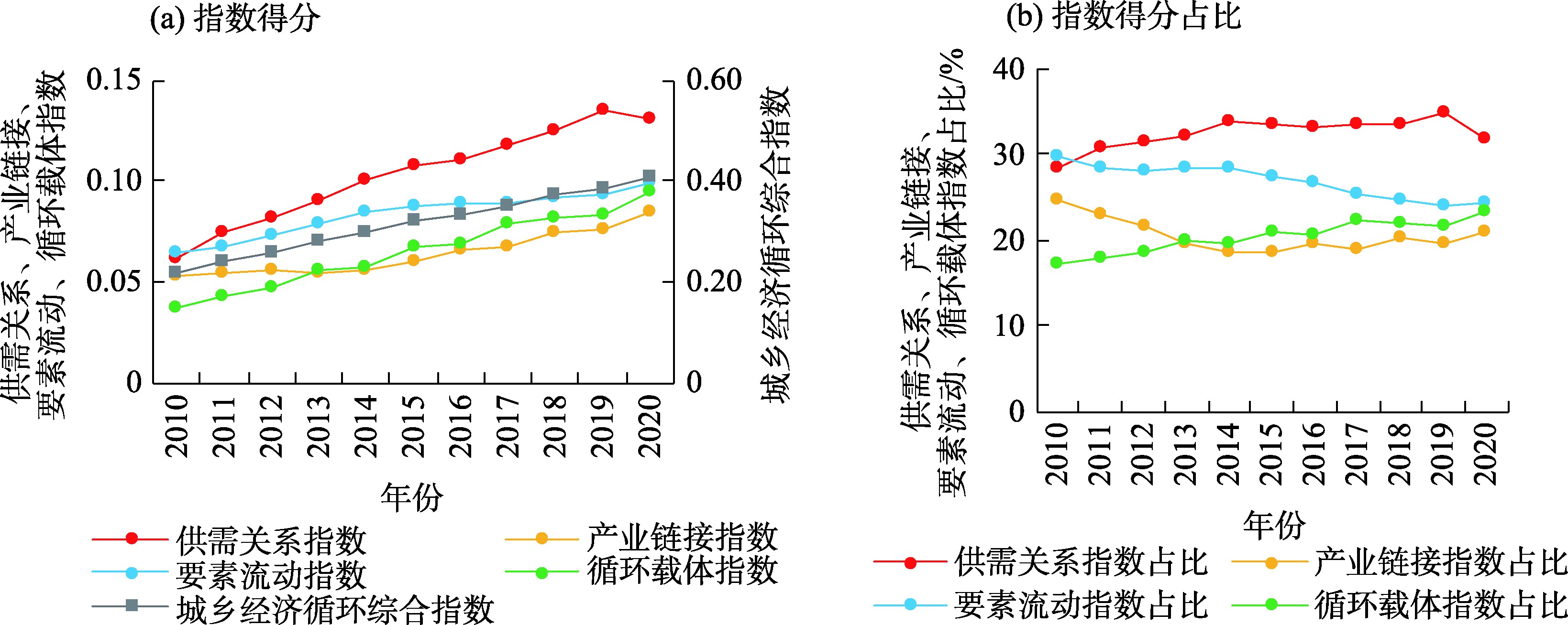2010—2020年江汉平原城乡经济循环指数及其结构变化趋势