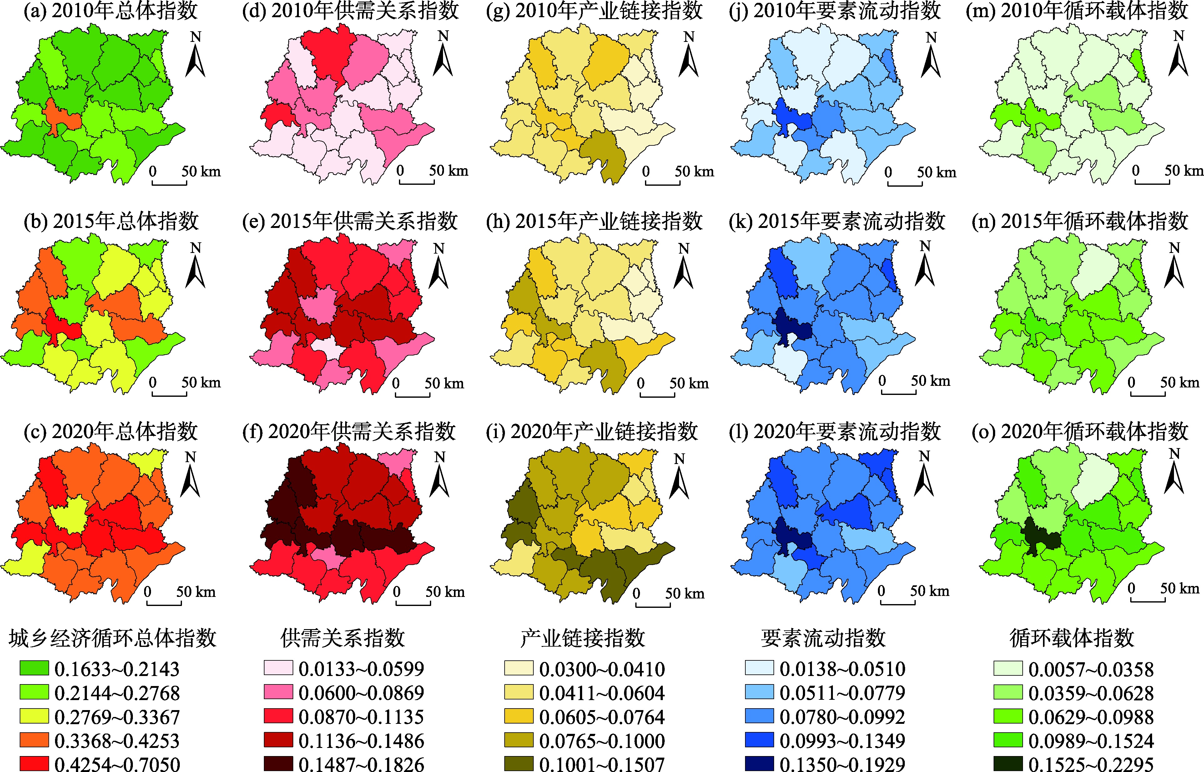 2010—2020年江汉平原城乡经济循环指数空间变化