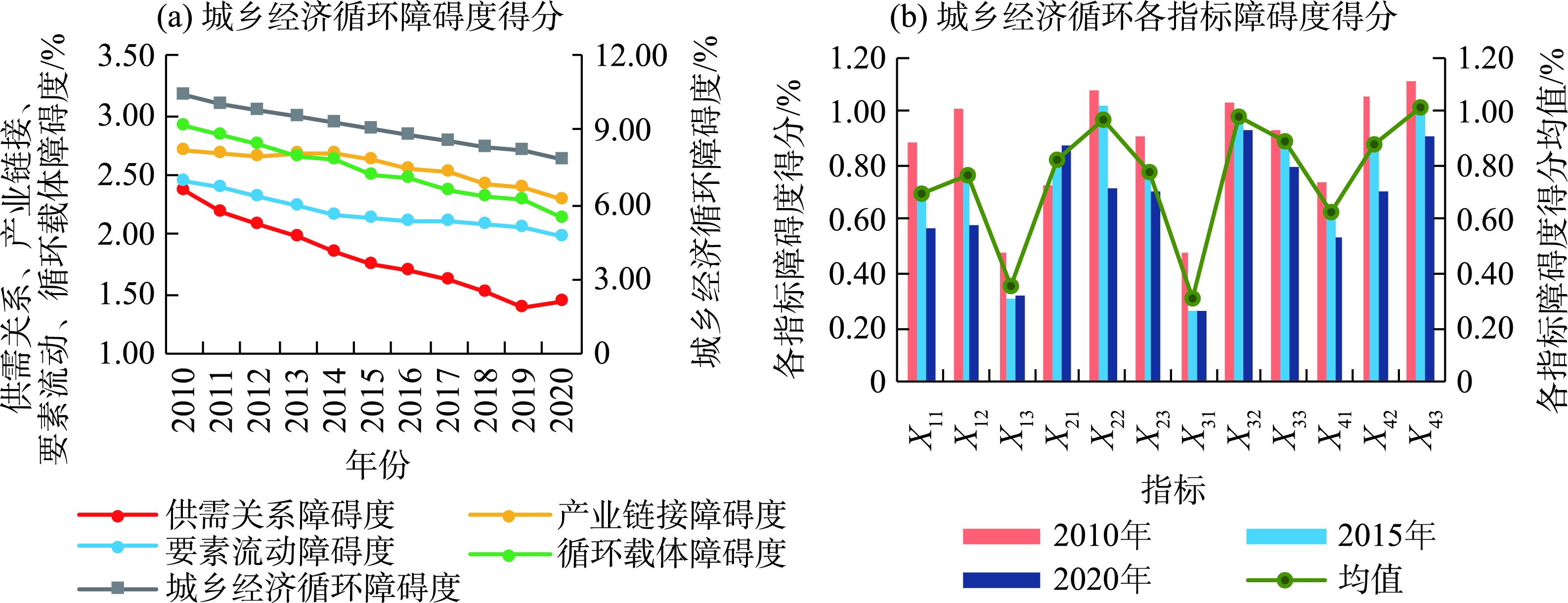2010—2020年江汉平原城乡经济循环各维度和指标障碍度