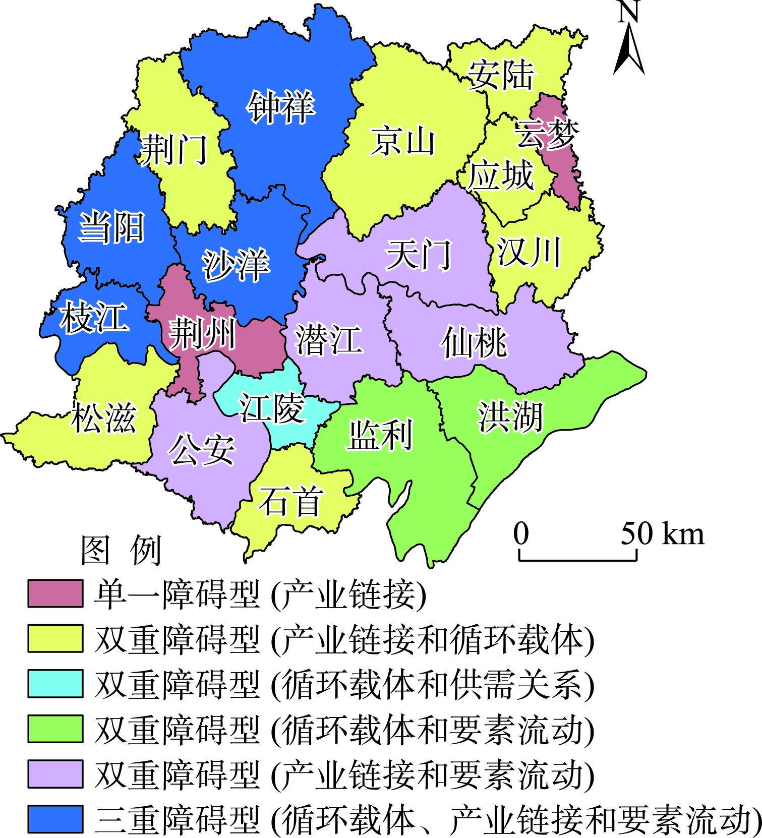 江汉平原城乡经济循环障碍度分区类型