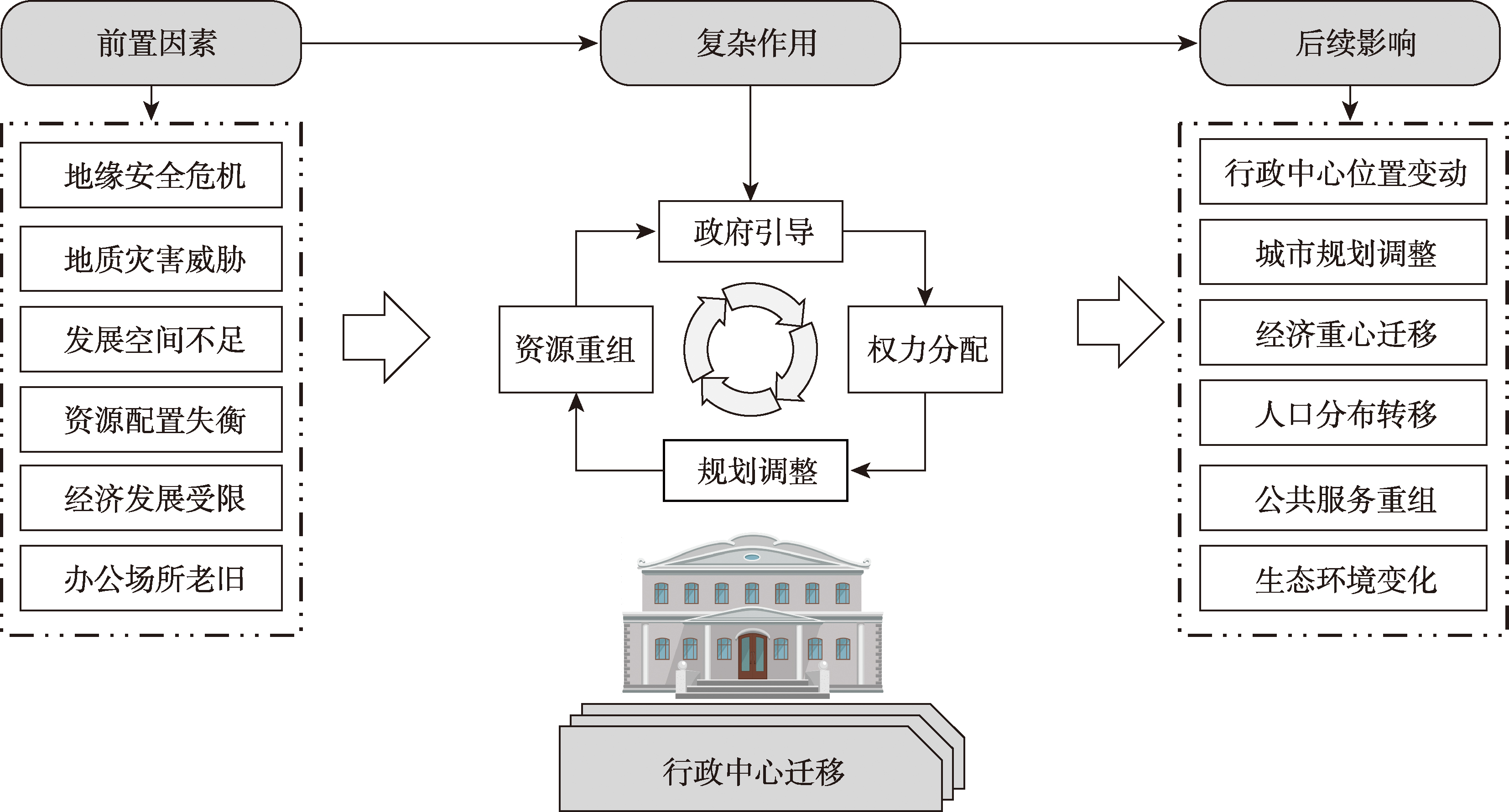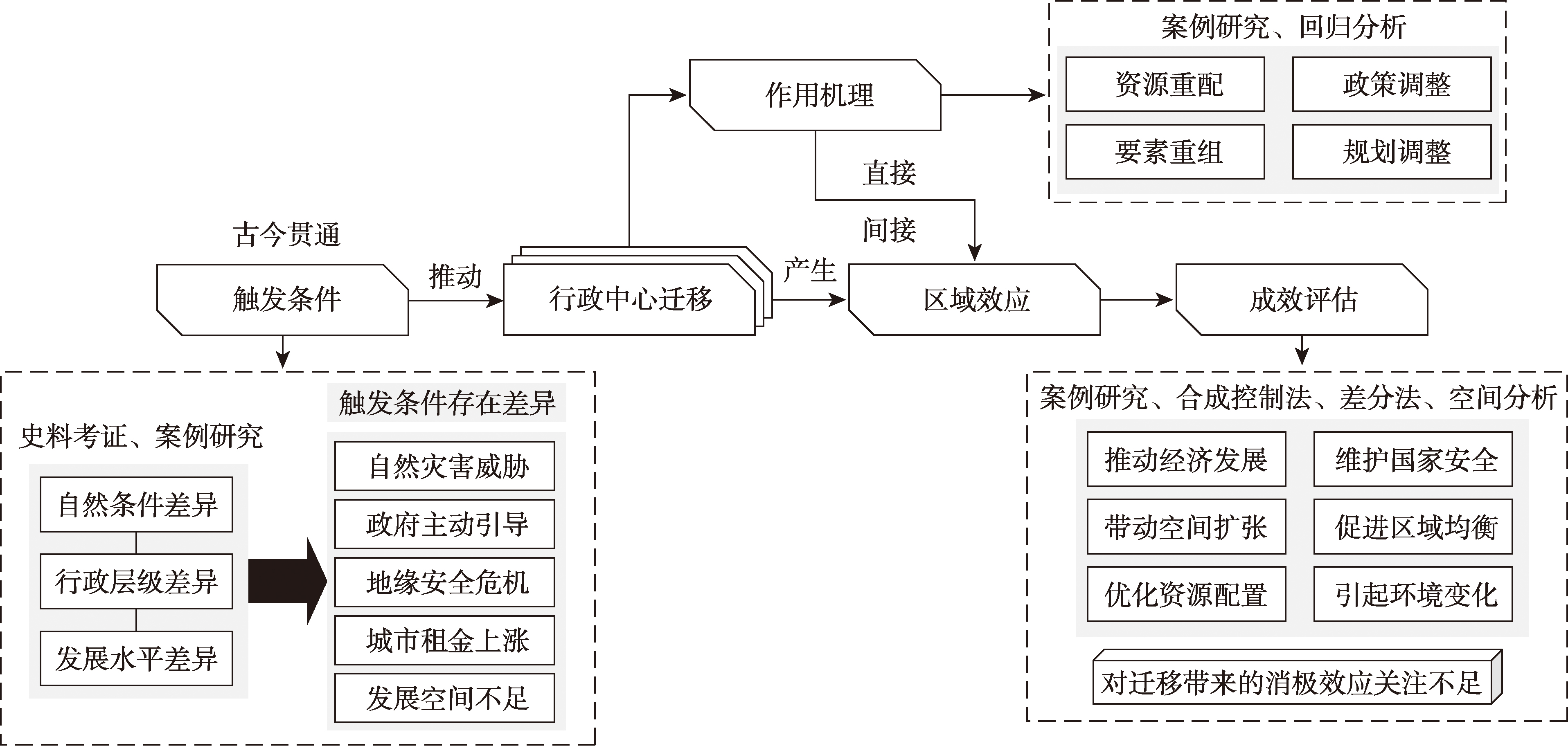 行政中心迁移研究不同内容体系的逻辑关系