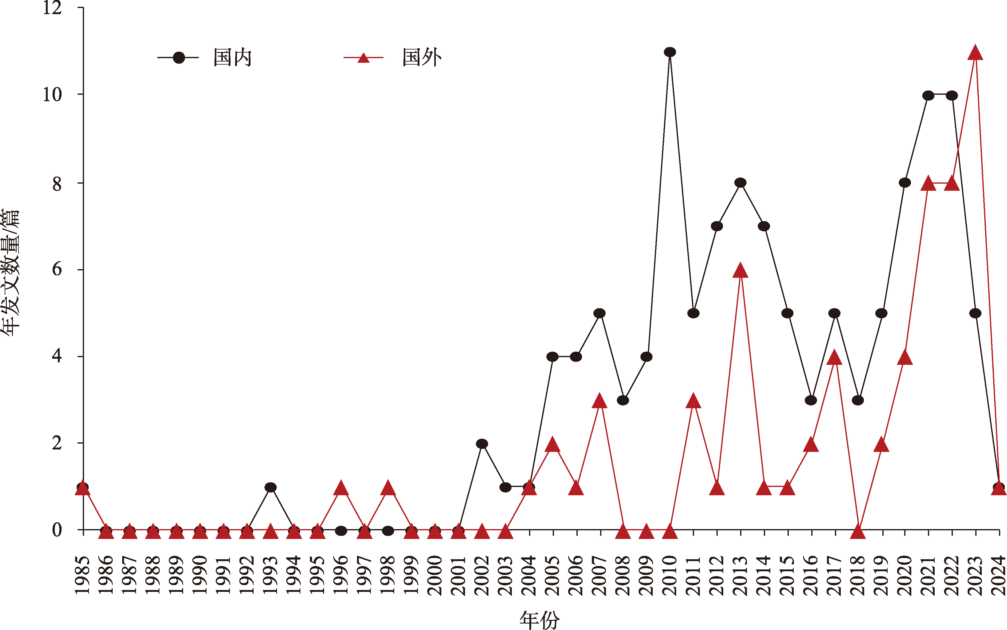 国内外行政中心迁移研究文献数量变化