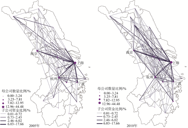 | 城市 | 2005年子公司数量相对中心度 | 2010年子公司数量相对中心度 | 2005年子公司资金相对中心度 | 2010年子公司资金相对中心度 |