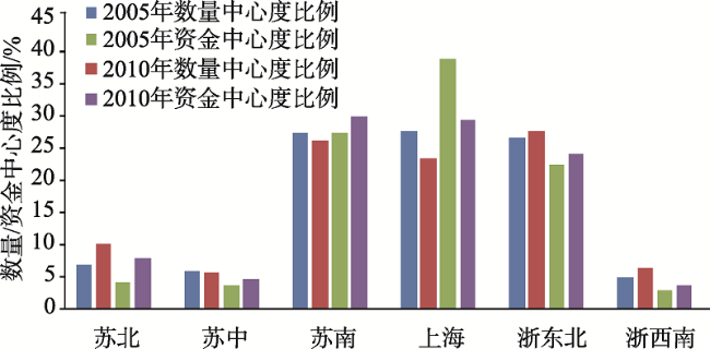 Fig. 4 Regional structure of the Yangtze River Delta urban network centrality based on company network图4 基于企业网络的长三角城市网络中心度的地域结构 |