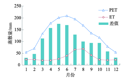 表2 ET、PET与气象因子相关系数Tab.2 Correlation coefficients of climatic factors with evapotranspiration (ET) and potential evapotranspiration (PET) |