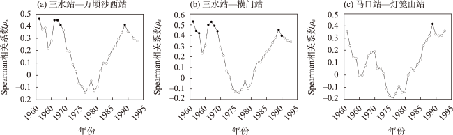 表3 显著相关测站在不同单变量重现期下联合重现期大小Tab.3 OR return period in stations with significant correlation under different univariate return periods |