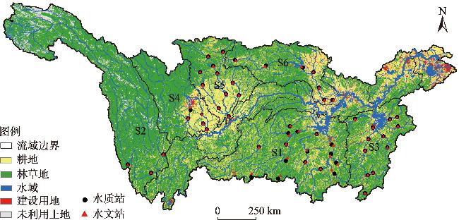 表1 长江流域水质监测站及对应的水文站和子流域土地利用类型Tab.1 Water quality monitoring stations in the Yangtze River Basin and corresponding hydrological stations and land use types in the subbasins |