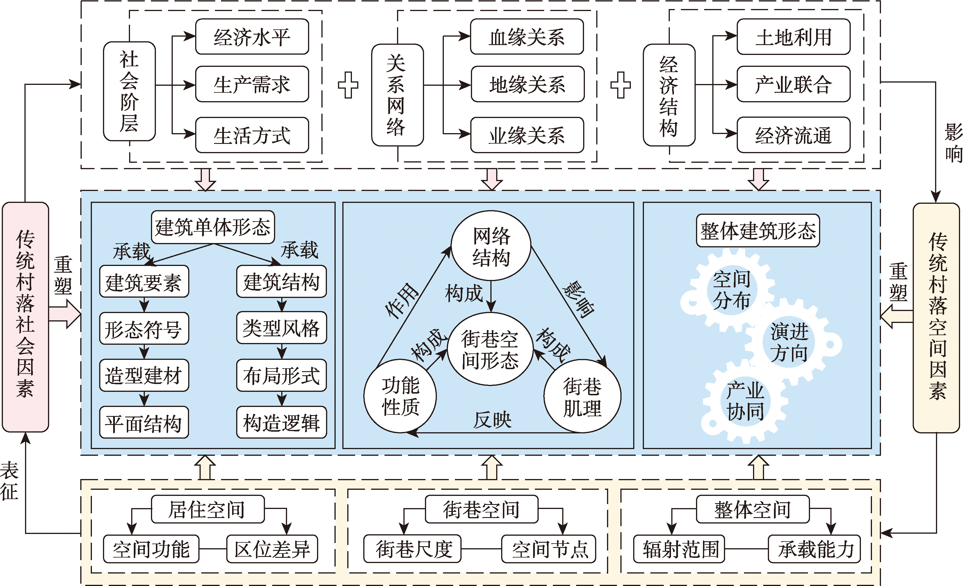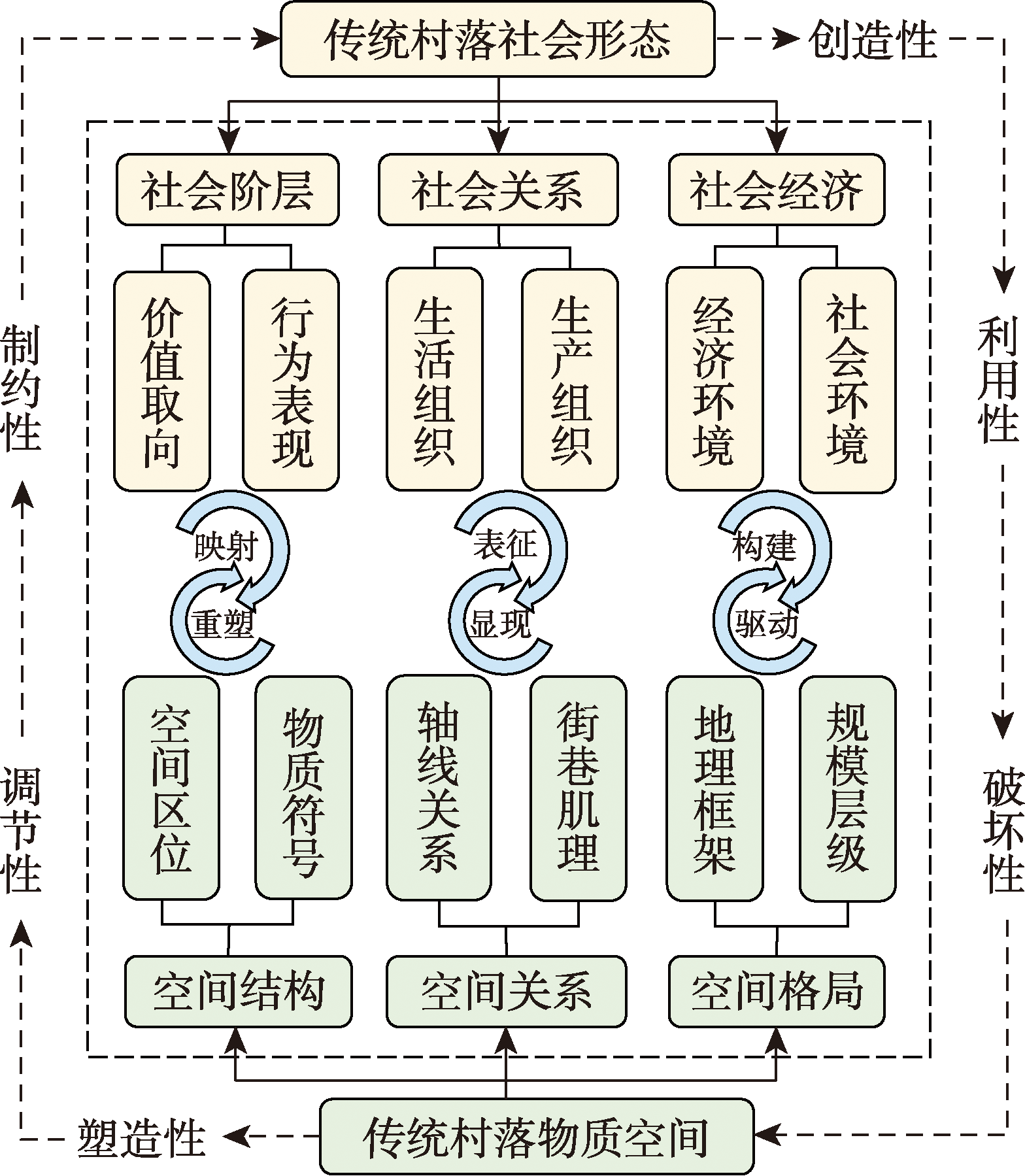 • Fig.2 Ananalytical framework of traditional village spatial morphology from the social-spatial mutual construction perspective