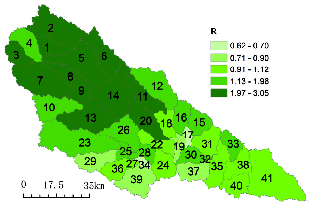 延河流域41个子流域的Slope-HRU景观指数空间分布特征