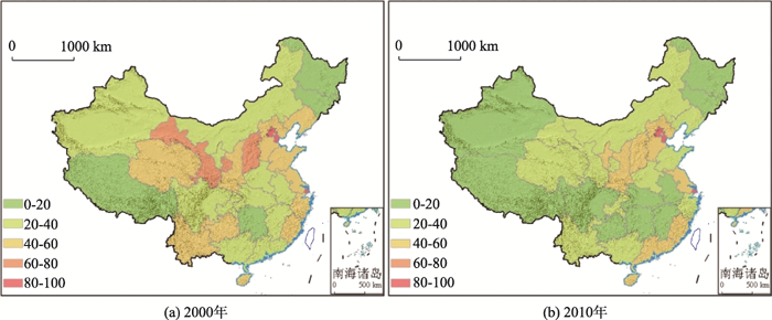 | 图6 2000年和2010年中国分省土地资源限制度空间格局 |
