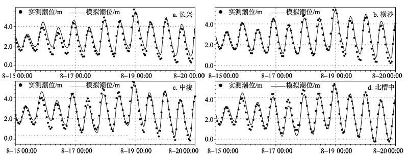 | 图2 9711台风期间上海沿岸各站潮位验证图 |