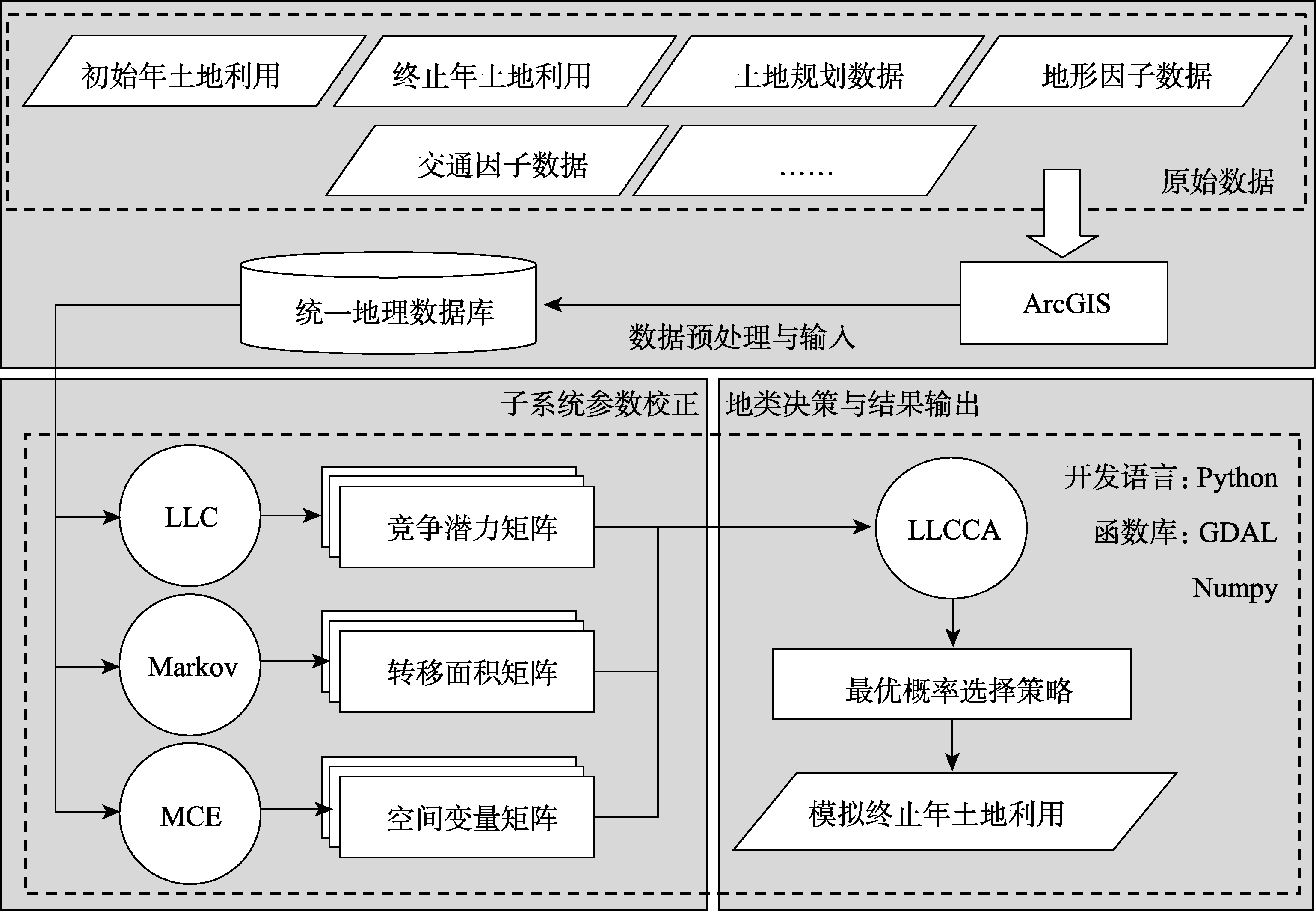 | Fig. 1 Land-use change simulation framework of localized land-use competition cellular automata model |