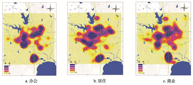 | Fig. 9 The spatial density distribution chart of three types of land transfer points in Hefei from 2007 to 2011 |