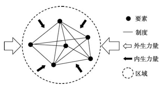 | 图2 区域经济发展的要素、制度、关系示意图 |