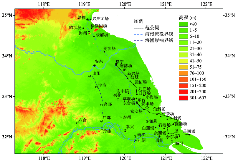 | 图6 1368-1911年苏北平原亚区风暴潮海侵影响范围 |