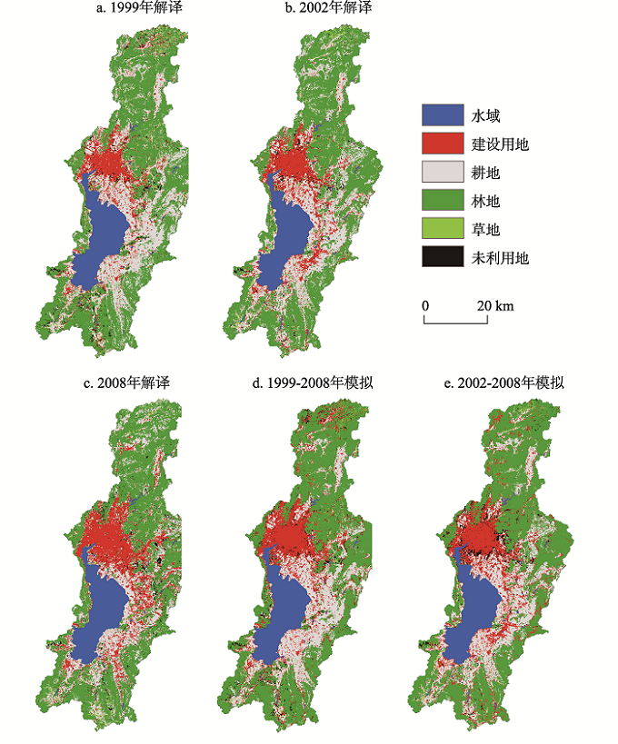 | 图2 滇池流域土地利用解译数据与模拟结果 |