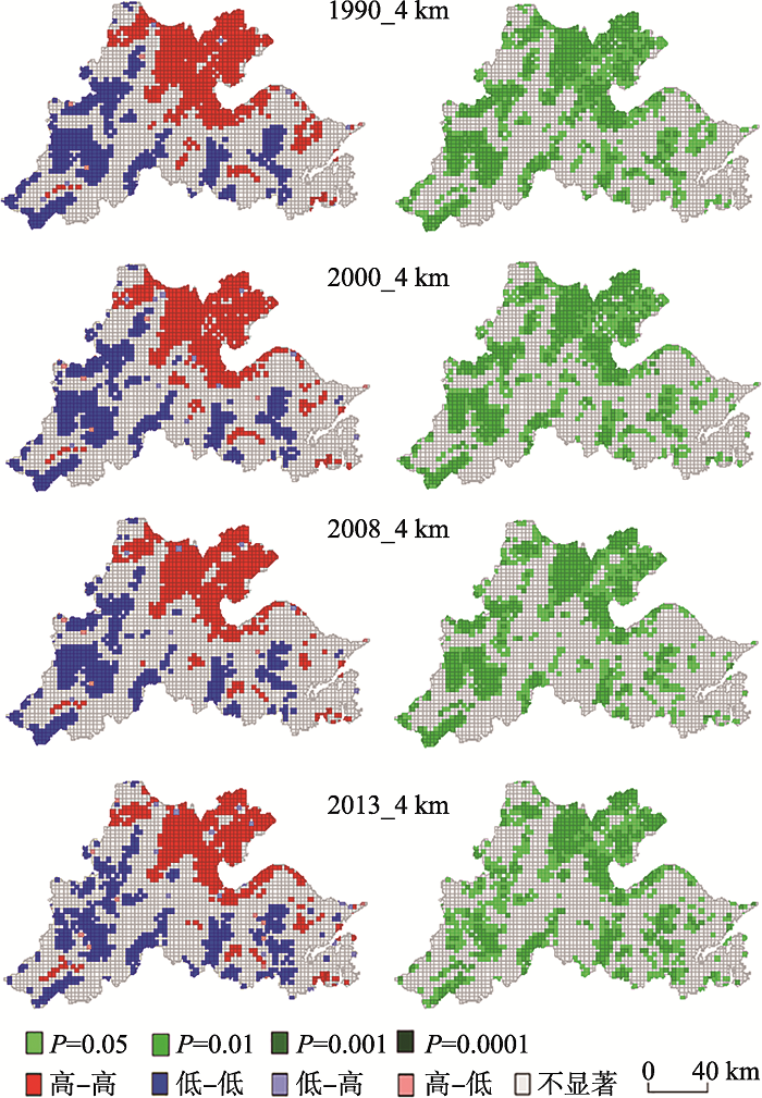| 图6 研究区4个年份土地利用空间冲突局部空间自相关图 |