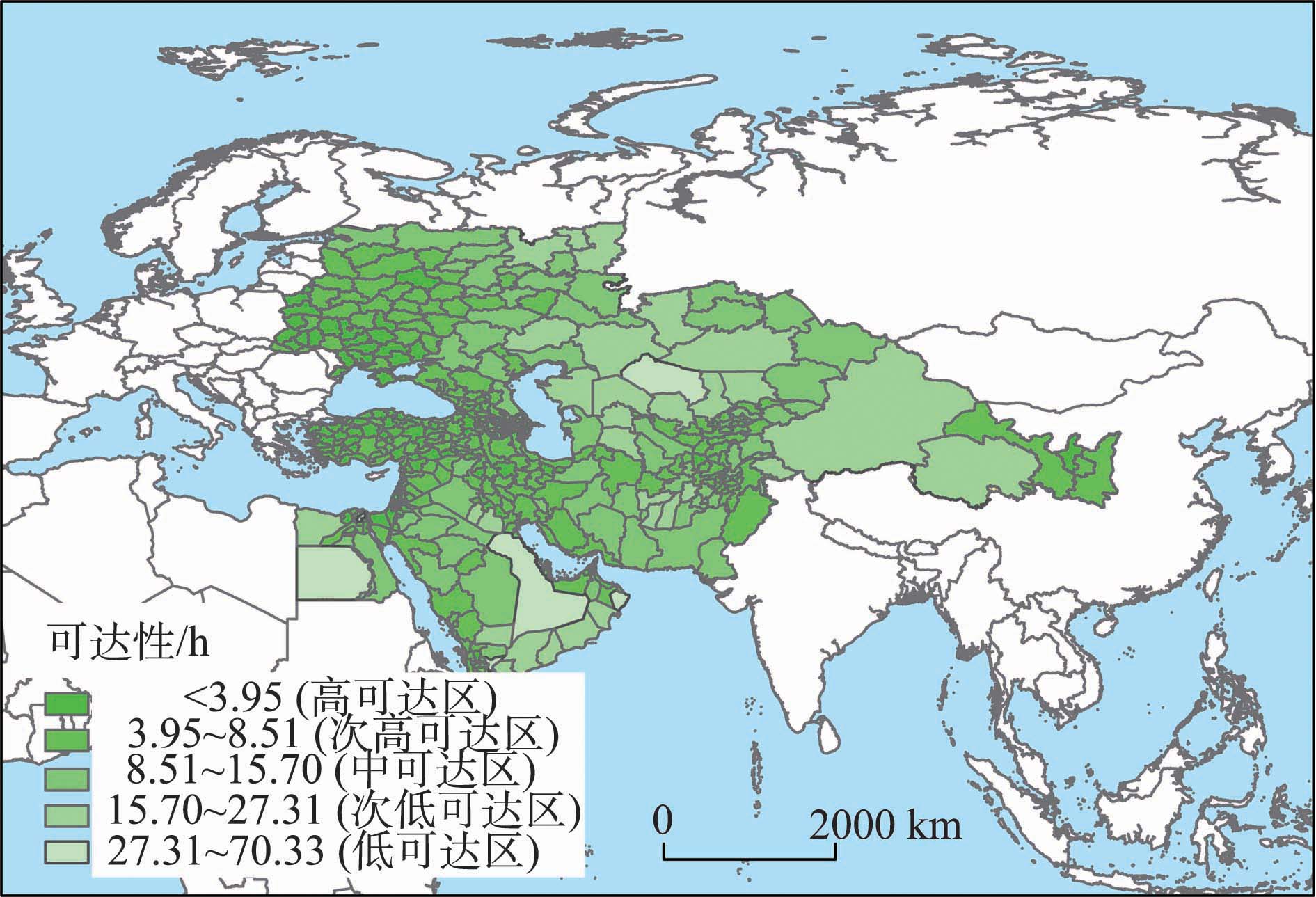 | Fig.3 Accessibility grade of cities at the provincial (state) level in the Silk Road Economic Belt |