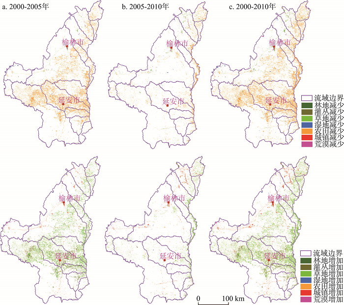| 图3 2000-2010年研究区土地利用/覆被变化空间分布 |