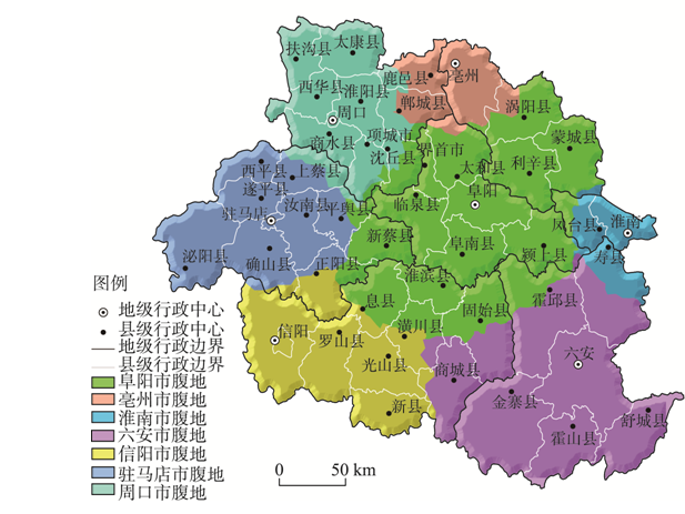 | 图2 豫皖省际边缘区各地级市腹地范围 |