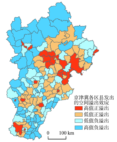 Fig. 1 Spatial pattern of emitted spillover effects in Beijing-Tianjin-Hebei region at county level