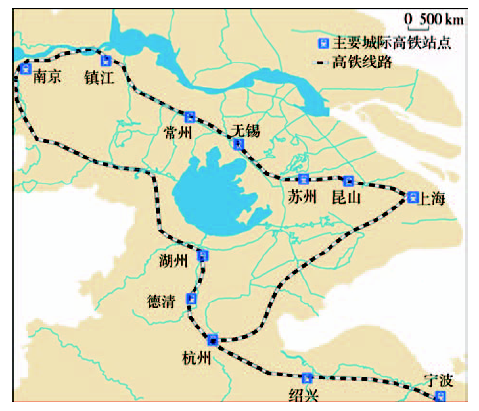 | 图1 长三角城市群高铁线路和站点布局示意图 |