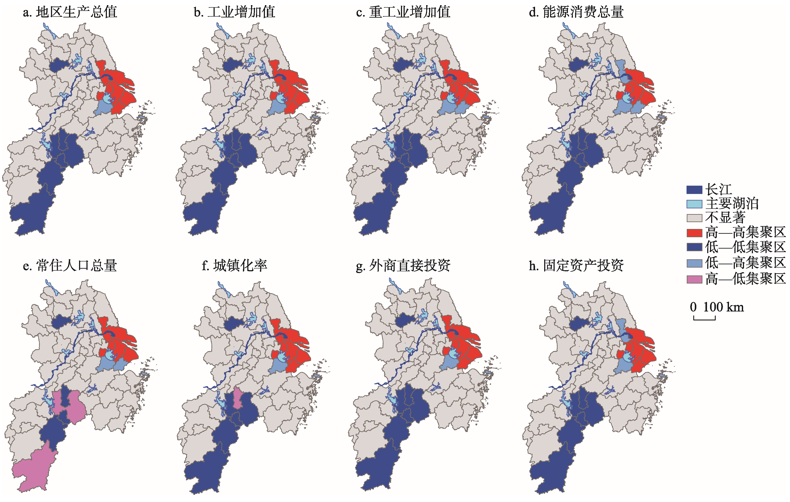 | 图5 2010年泛长三角地区各市碳排放量与各影响因素的LISA聚类图 |
