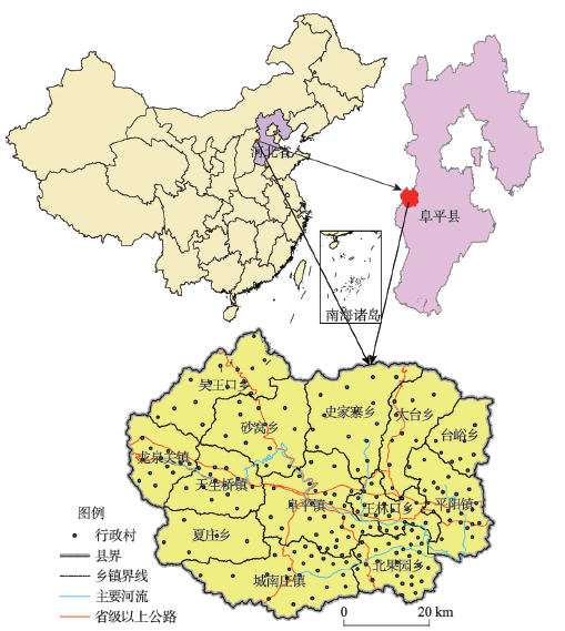 | 图1 研究区位置及河北阜平县行政区范围 |