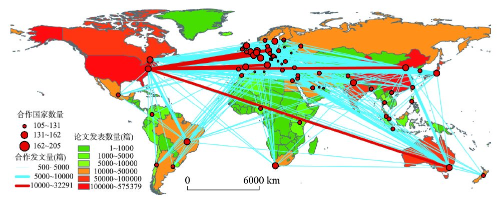 | Fig. 3 Spatial distribution of global scientific collaboration network |