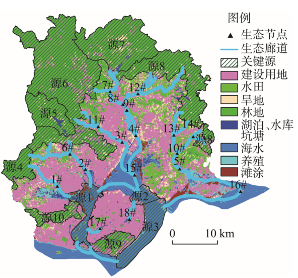 | 图5 厦门港湾景观生态安全格局要素分布图 (底图为2015年该区域景观分类图) |
