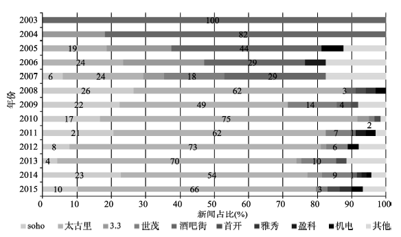 | 图4 2003-2015年三里屯不同地点在新闻报道中的占比② |