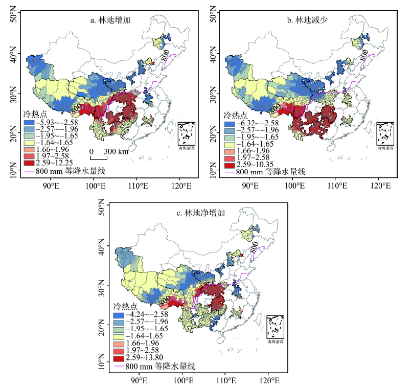 图3 2002-2013年中国林地变化的冷热点分布 |