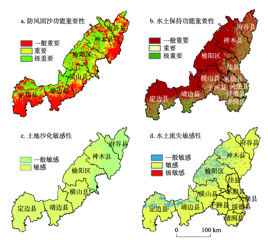 | 图6 榆林市生态服务功能重要性与生态敏感性分布图 |