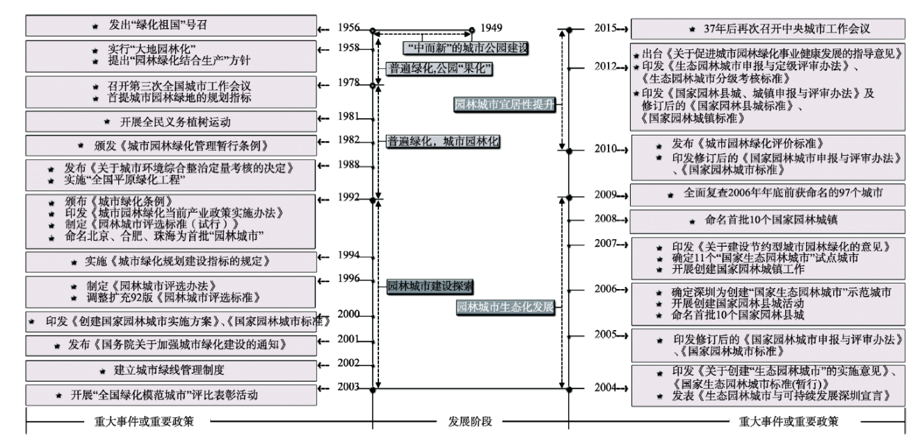 | 图2 1949年以来中国园林绿化及“创园”重要政策梳理 |