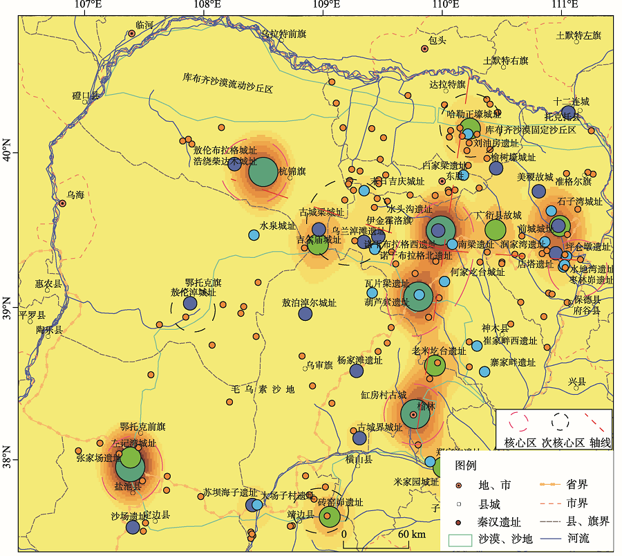 | Fig. 3 Core density of Qin and Han archaeological sites on the Ordos Plateau, based on the area of the sites |