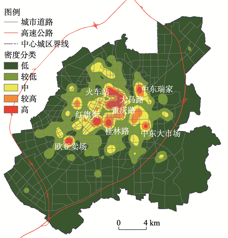 | Fig. 2 Kernel density of commercial sites in Changchun |