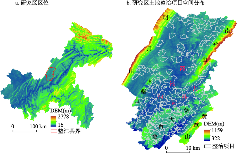 | 图1 研究区区位及土地整治项目空间分布 |