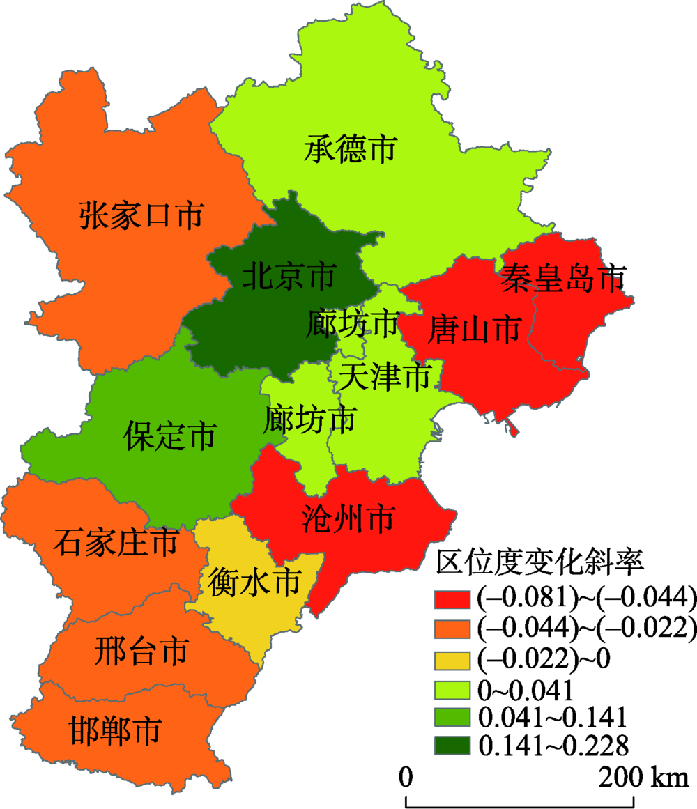 | 图4 1993-2013年京津冀城市社会经济区位度变化斜率 |