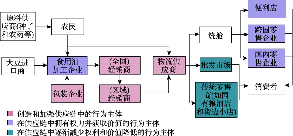 | 图4 跨国零售企业进入中国市场之后的大豆油供应链 |