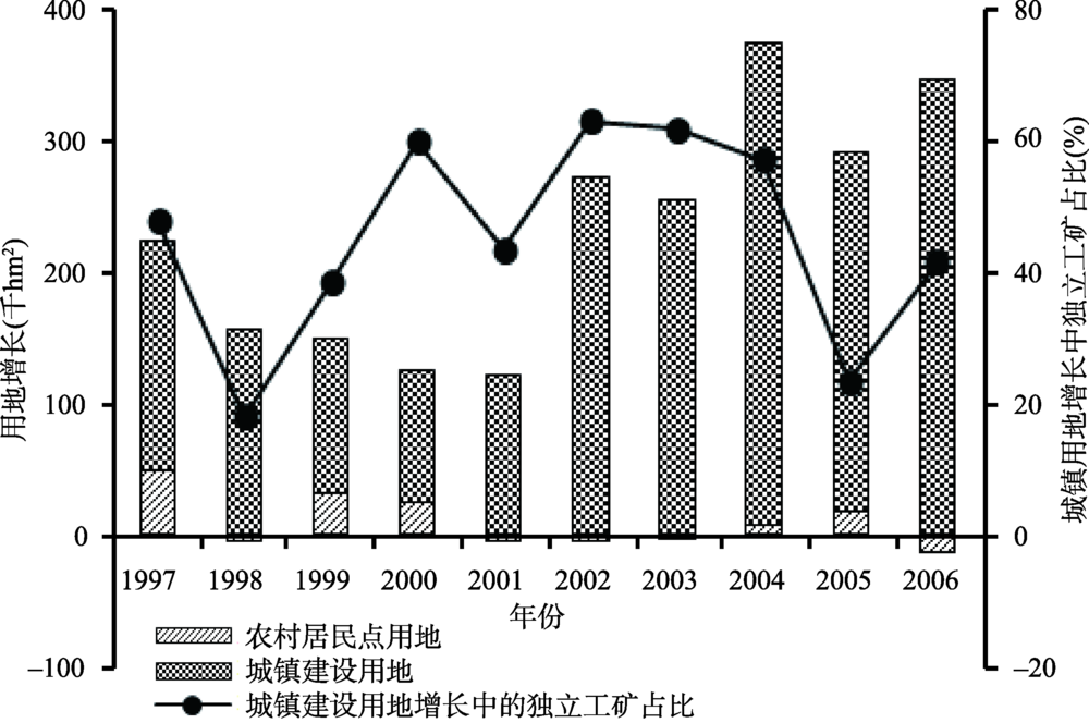 | 图1 1996-2006年中国城乡建设用地的增长趋势 |
