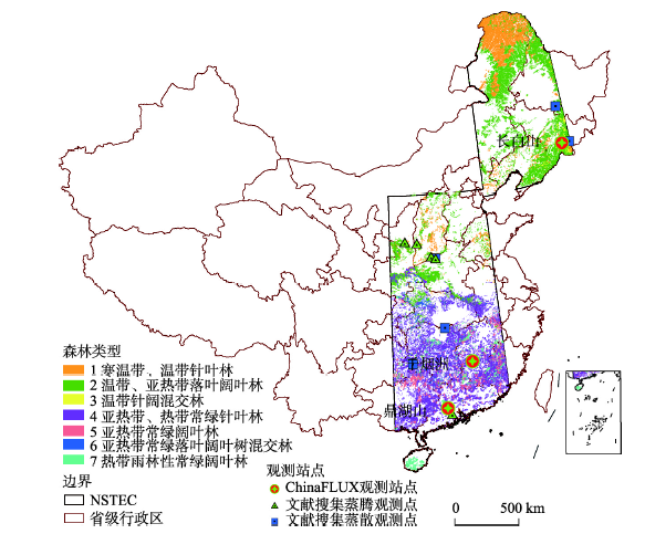 | 中国东部南北样带(NSTEC)及ChinaFLUX研究站点和文献搜集观测点分布图 |