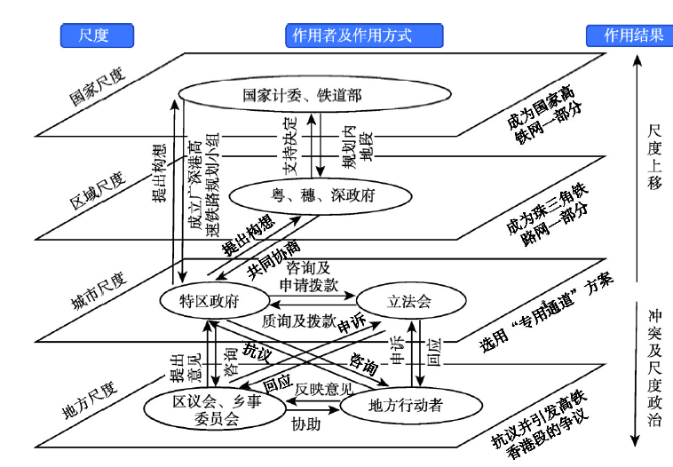 | 图1 分析框架:特区政府尺度重组的作用者、作用方式及结果 |