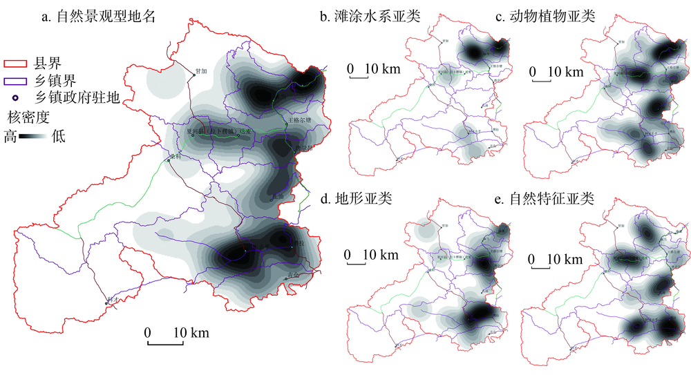 | 图2 夏河县自然景观型地名的核密度分布 |