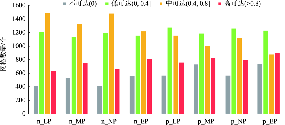 | Fig.4 The number of grids with different accessibility of fire service at different time periods |